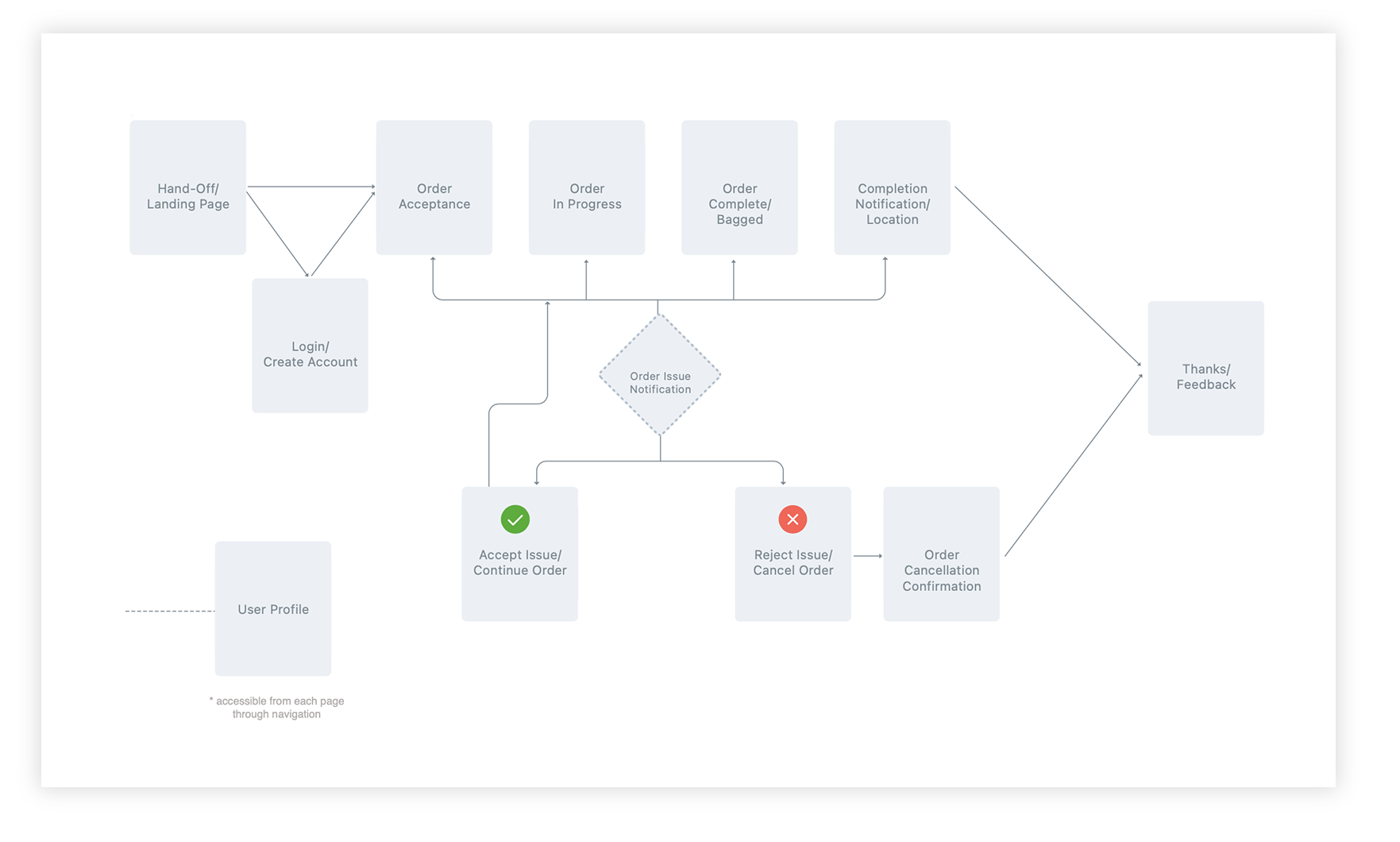 An order fulfillment app concept providing real-time progress and communication from payment through pick-up.